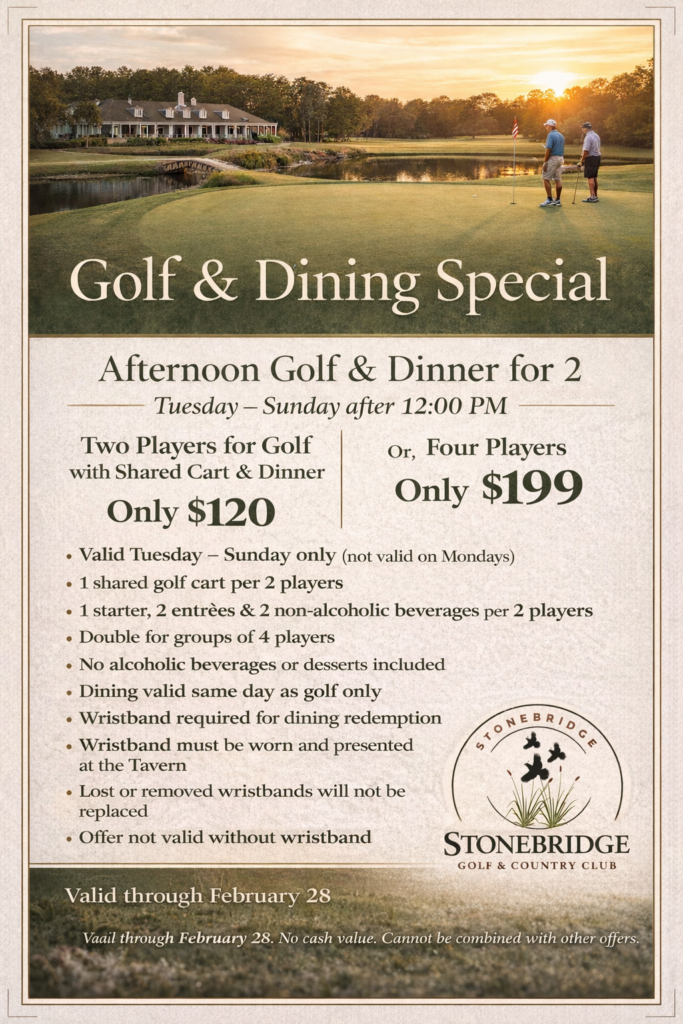 Host your dream wedding or special event at Stonebridge Golf & Country Club. Set on over 900 acres of scenic views, our elegant spaces provide the perfect backdrop for unforgettable celebrations.