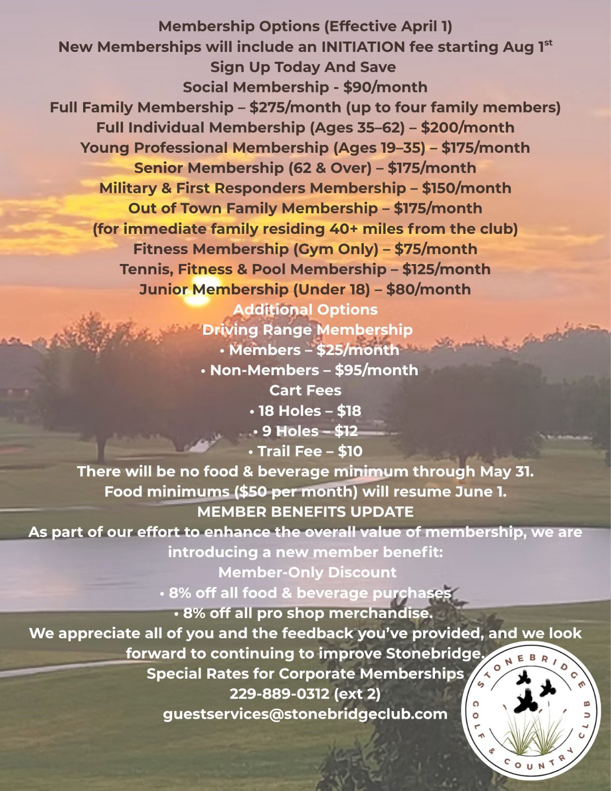 To join, fill out the above application and submit to guest guestservices@stonebridgeclub.